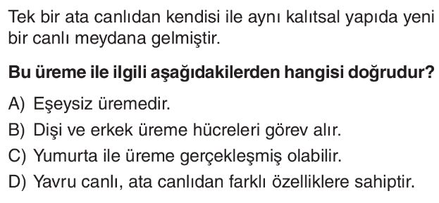 6. Sınıf Eşeyli ve Eşeysiz Üreme Test 1
