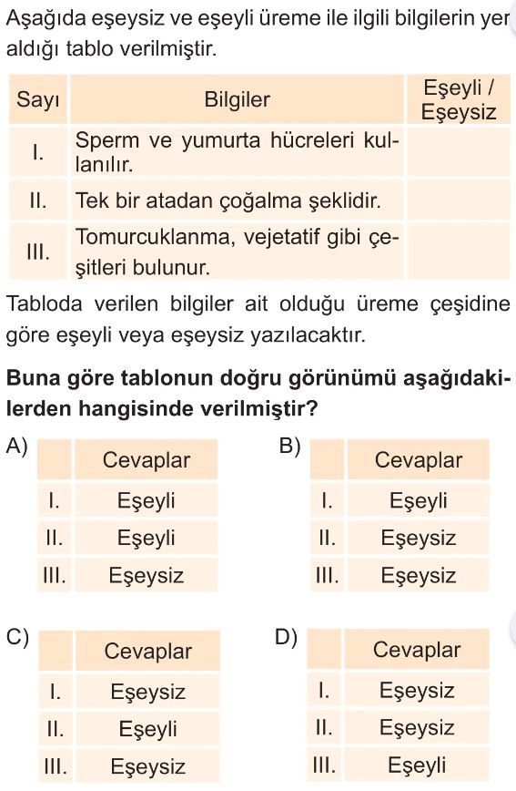 6. Sınıf Eşeyli ve Eşeysiz Üreme Test 2
