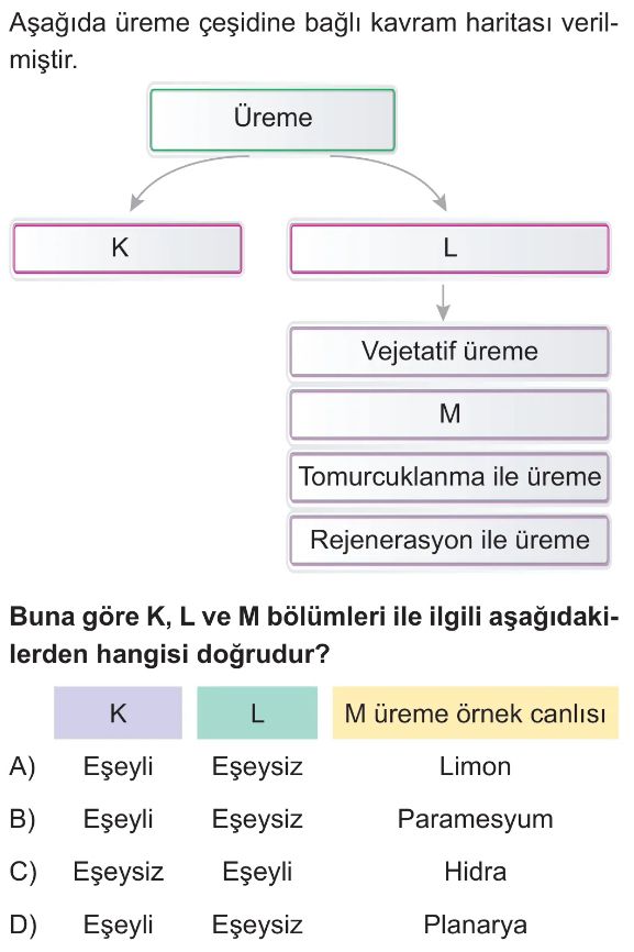 6. Sınıf Eşeyli ve Eşeysiz Üreme Test 6