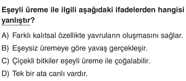 6. Sınıf Eşeyli ve Eşeysiz Üreme Test 6