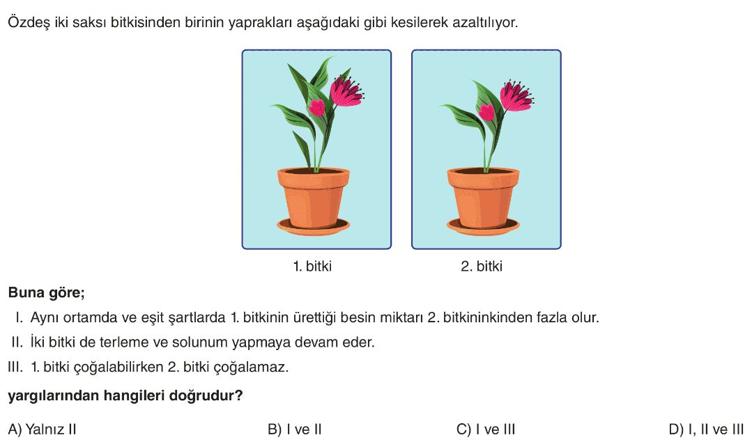6. Sınıf Bitkilerde Üreme, Büyüme ve Gelişme Test 1