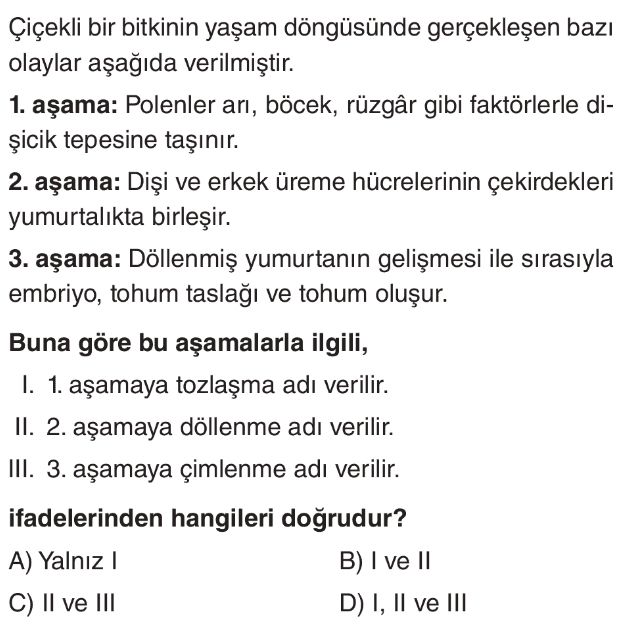 6. Sınıf Bitkilerde Üreme, Büyüme ve Gelişme Test 5