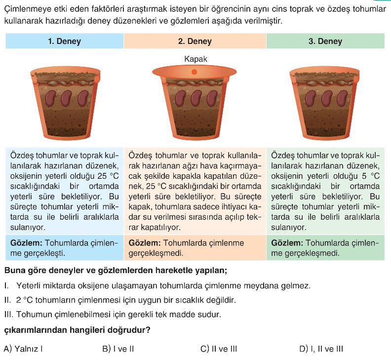 6. Sınıf Tohumun Çimlenmesine Etki Eden Faktörler Test 1