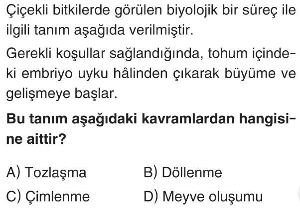 6. Sınıf Tohumun Çimlenmesine Etki Eden Faktörler Test 1