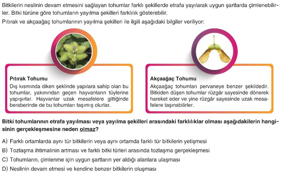 6. Sınıf Tohumun Çimlenmesine Etki Eden Faktörler Test 2