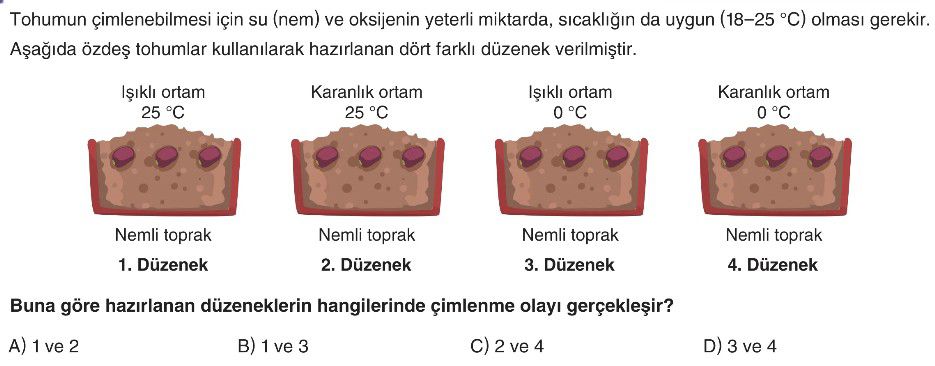 6. Sınıf Tohumun Çimlenmesine Etki Eden Faktörler Test 2