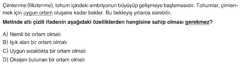 6. Sınıf Tohumun Çimlenmesine Etki Eden Faktörler Test 3