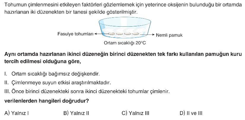 6. Sınıf Tohumun Çimlenmesine Etki Eden Faktörler Test 4