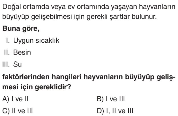 6. Sınıf Hayvanlarda Üreme, Büyüme ve Gelişme Test 5