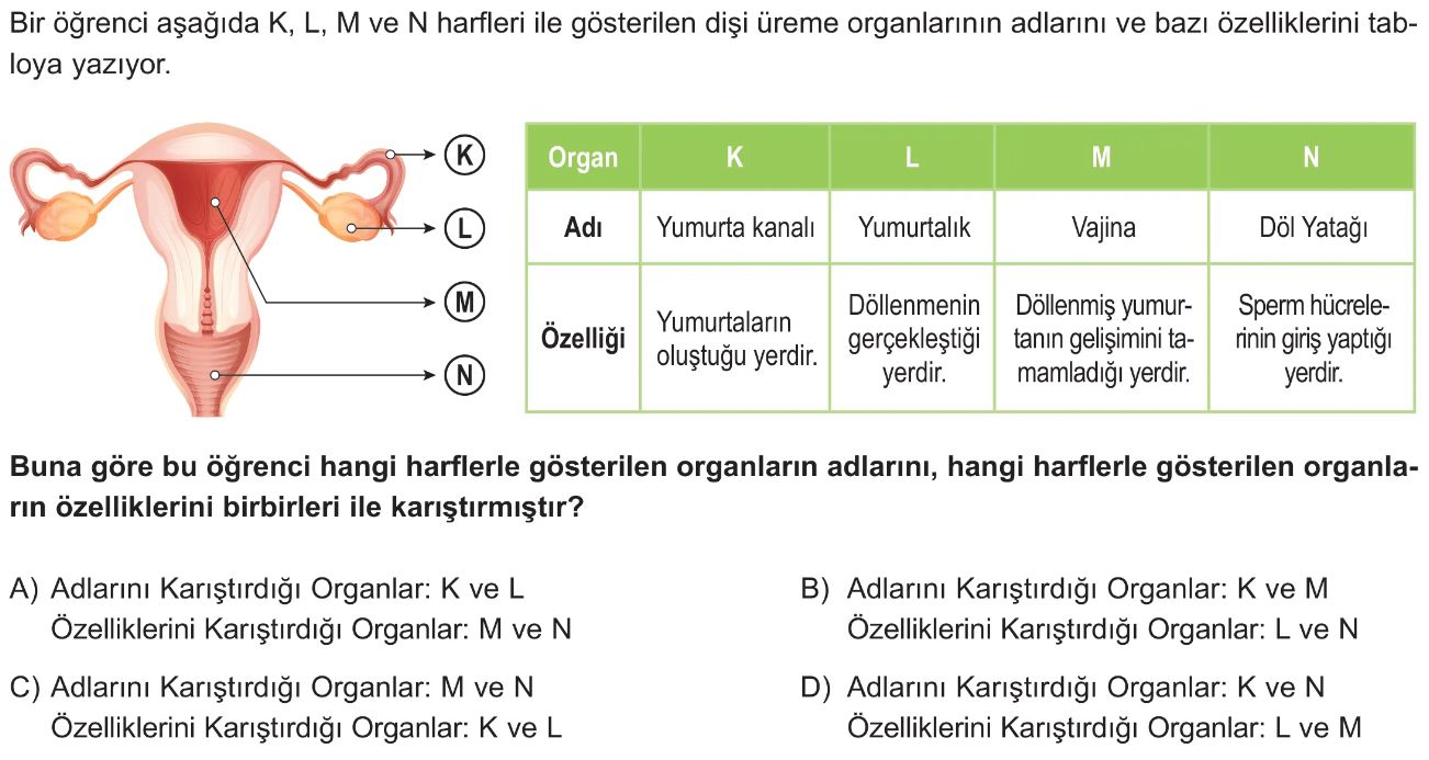 6. Sınıf İnsanda Üremeyi Sağlayan Yapı ve Organlar Test 1