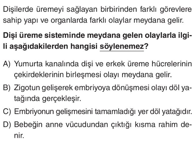 6. Sınıf İnsanda Üremeyi Sağlayan Yapı ve Organlar Test 4