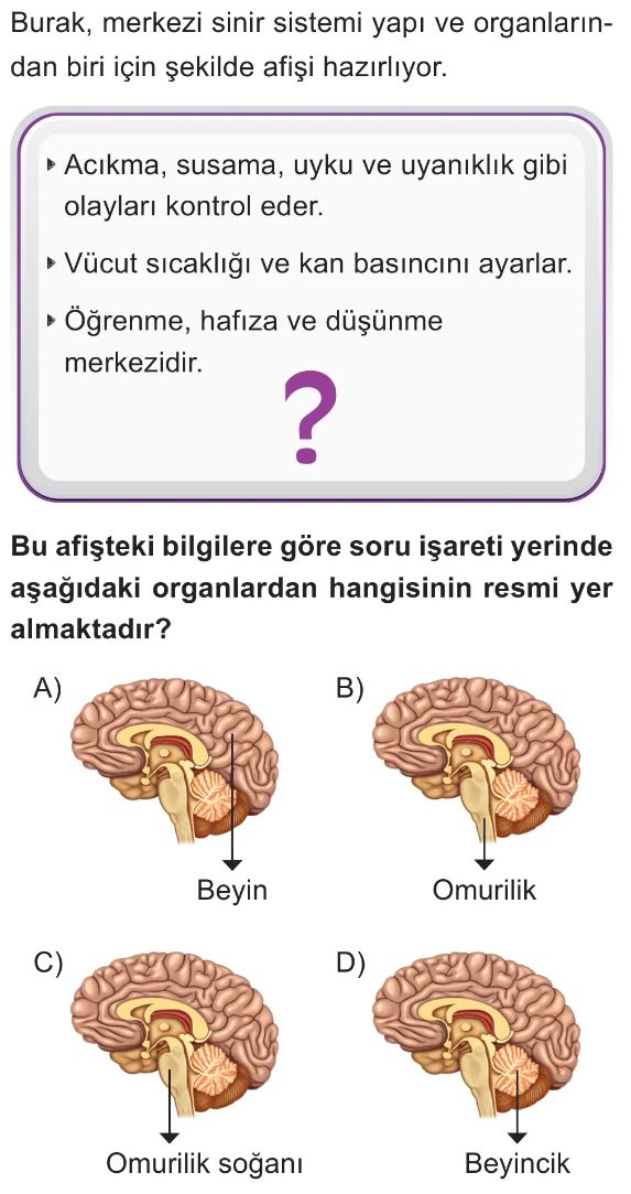 6. Sınıf Sinir Sisteminin Görevleri Test 1