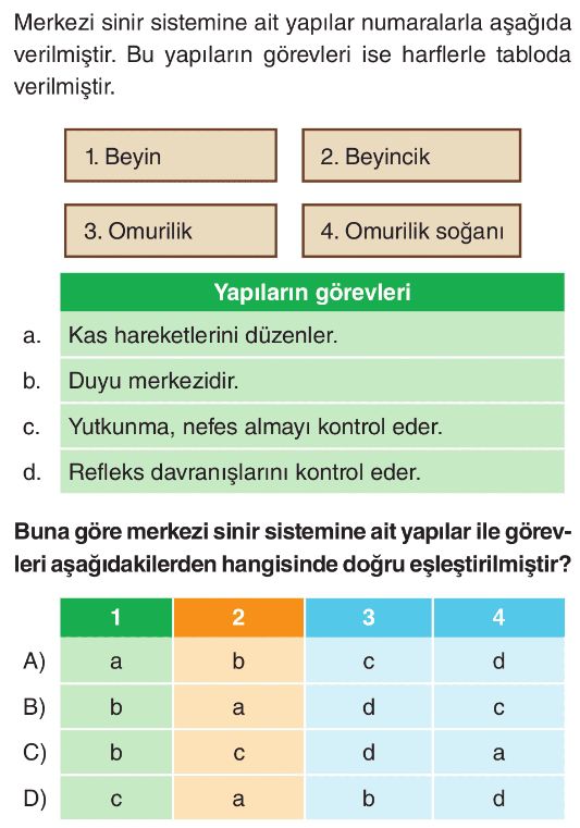 6. Sınıf Sinir Sisteminin Görevleri Test 2