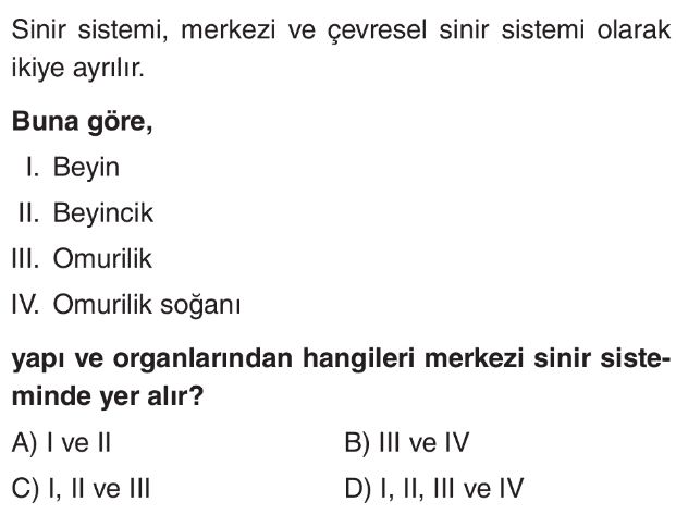 6. Sınıf Sinir Sisteminin Görevleri Test 2