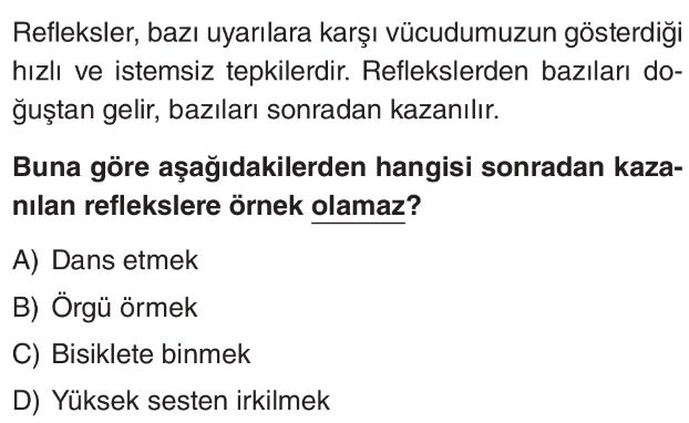 6. Sınıf Sinir Sisteminin Görevleri Test 3