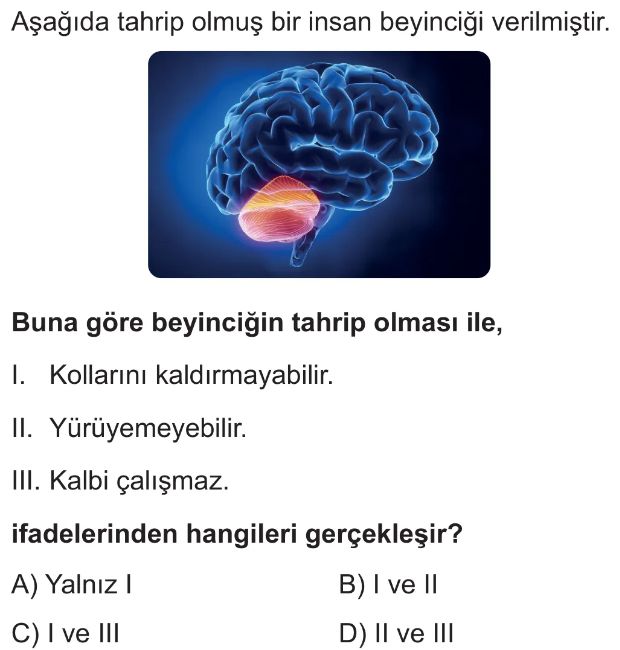 6. Sınıf Sinir Sisteminin Görevleri Test 3