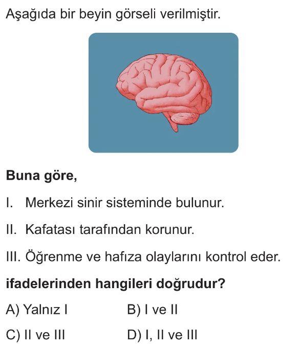 6. Sınıf Sinir Sisteminin Görevleri Test 3