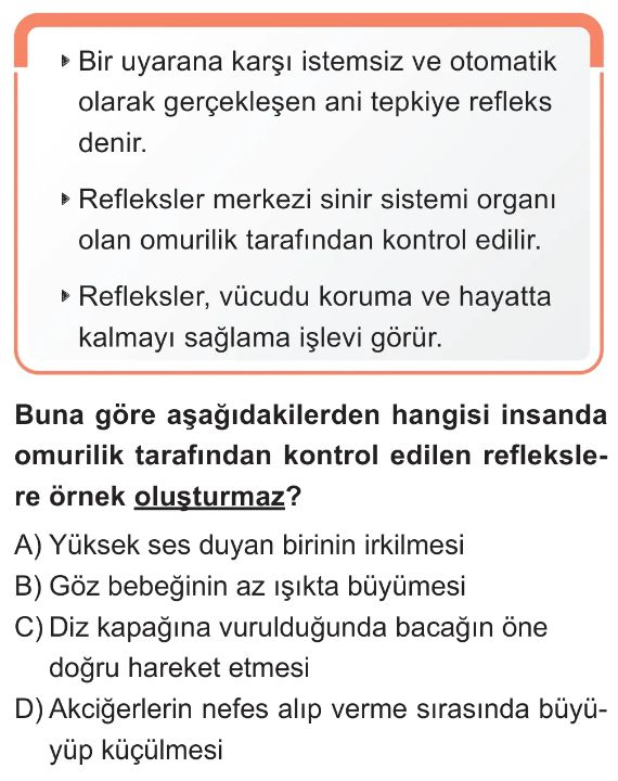 6. Sınıf Sinir Sisteminin Görevleri Test 4