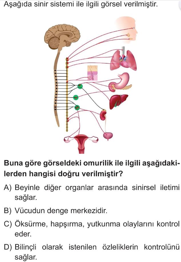 6. Sınıf Sinir Sisteminin Görevleri Test 5