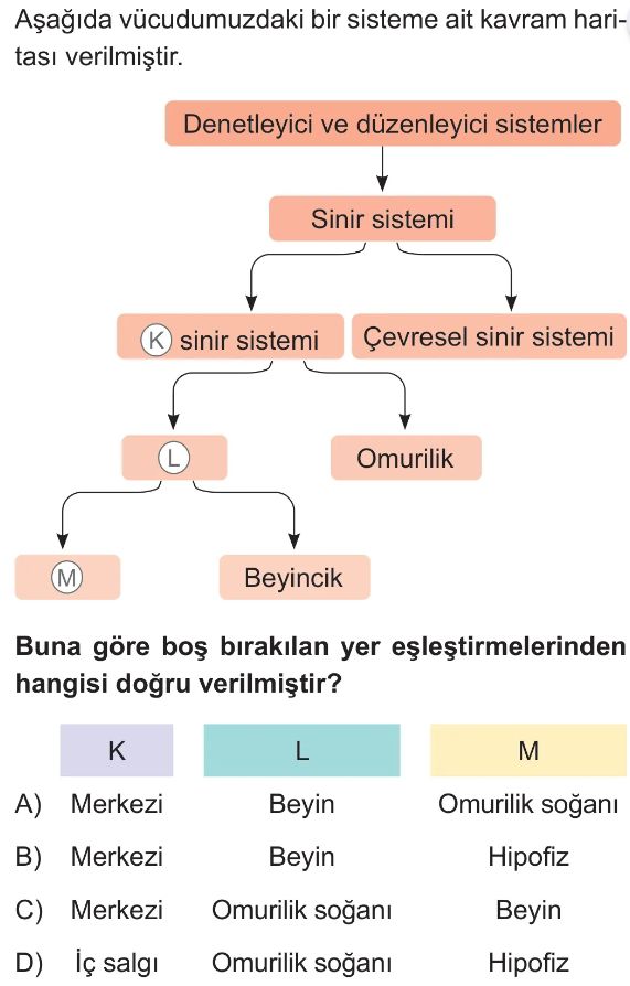 6. Sınıf Sinir Sisteminin Görevleri Test 5