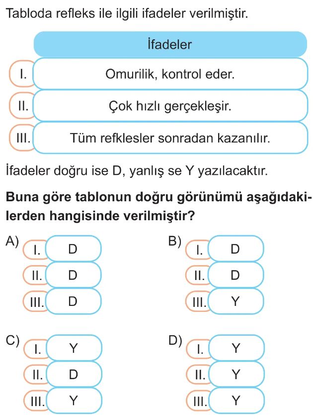 6. Sınıf Sinir Sisteminin Görevleri Test 6