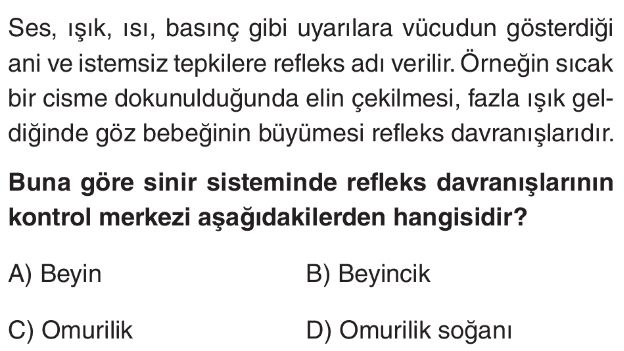 6. Sınıf Sinir Sisteminin Görevleri Test 6