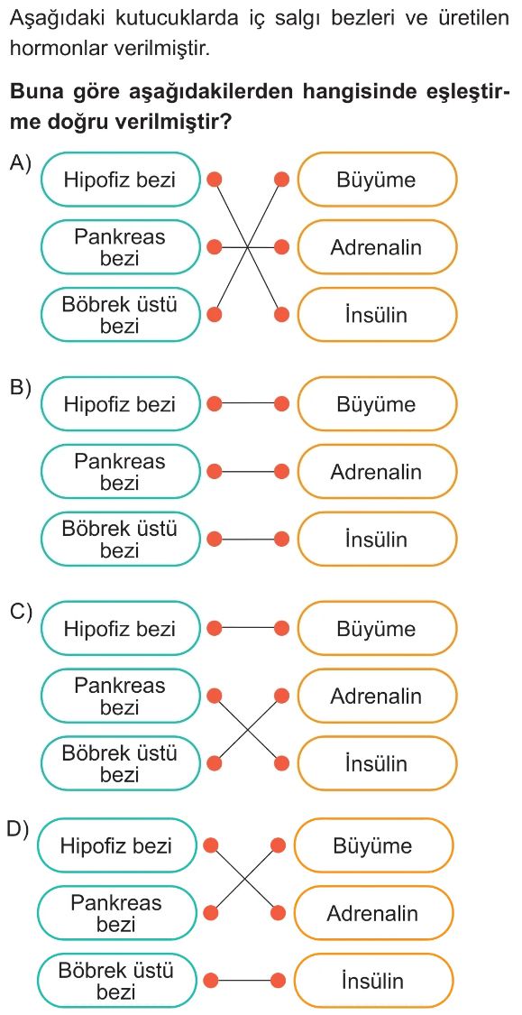 6. Sınıf İç Salgı Bezlerinin Vücut İçin Önemi Test 1
