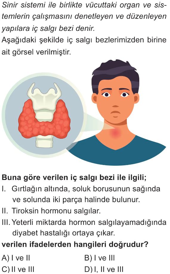 6. Sınıf İç Salgı Bezlerinin Vücut İçin Önemi Test 1