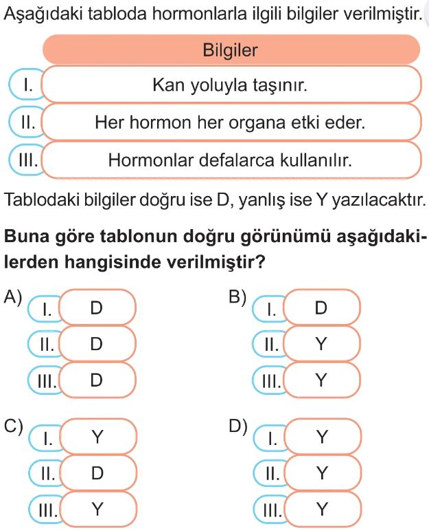 6. Sınıf İç Salgı Bezlerinin Vücut İçin Önemi Test 2