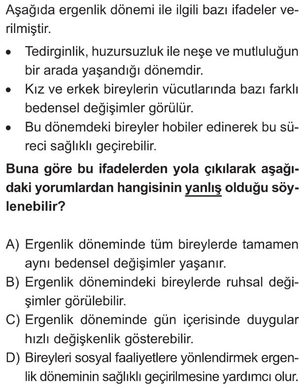 6. Sınıf Çocukluktan Ergenliğe Geçiş Test 1