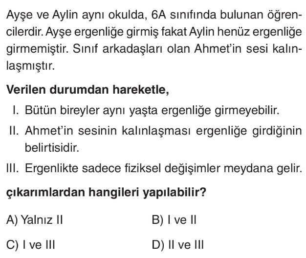 6. Sınıf Çocukluktan Ergenliğe Geçiş Test 1