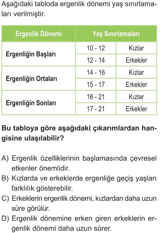 6. Sınıf Çocukluktan Ergenliğe Geçiş Test 1