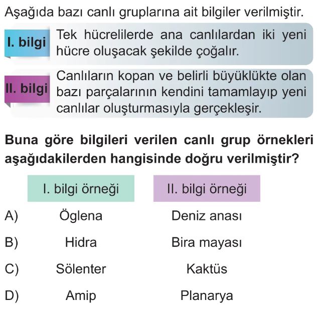 6. Sınıf Canlılarda Sistemler Ünite Değerlendirme Test 1