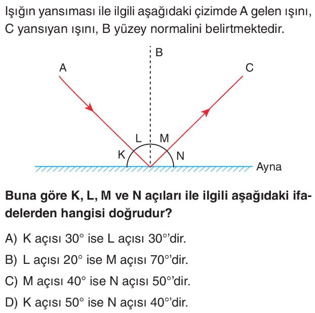 6. Sınıf Işığın Yansıması Test 4