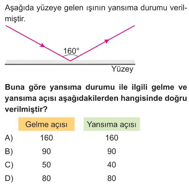 6. Sınıf Işığın Yansıması Test 8