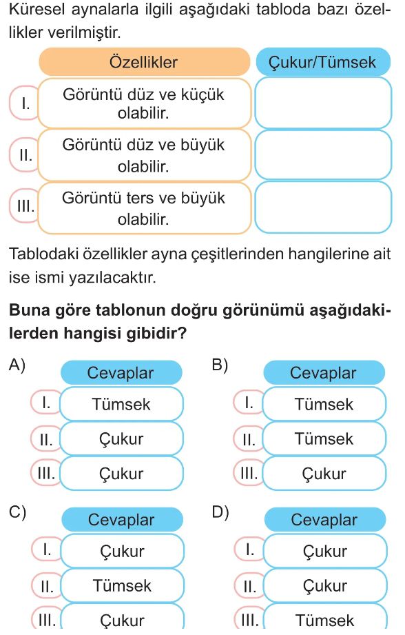 6. Sınıf Aynalar (Ayna Çeşitleri) Test 3