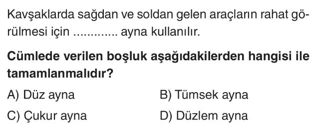 6. Sınıf Aynalar (Ayna Çeşitleri) Test 3