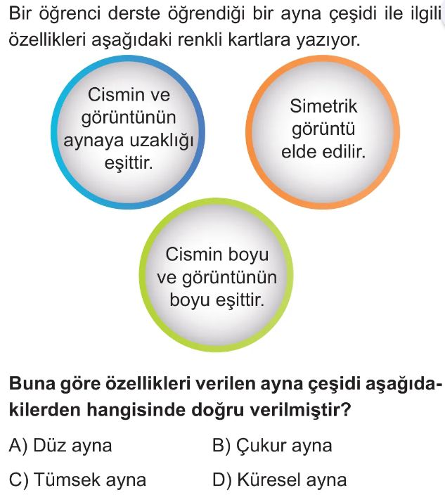6. Sınıf Aynalar (Ayna Çeşitleri) Test 4