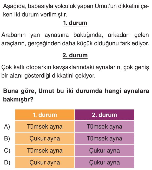 6. Sınıf Aynalar (Ayna Çeşitleri) Test 5