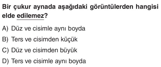 6. Sınıf Aynalar (Ayna Çeşitleri) Test 7