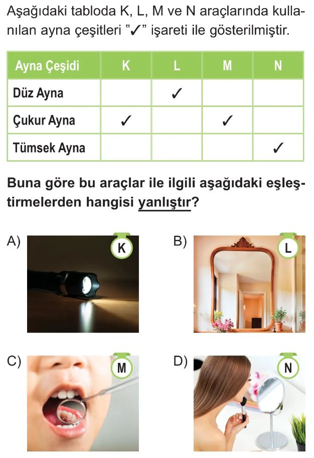 6. Sınıf Aynalar (Ayna Çeşitleri) Test 7
