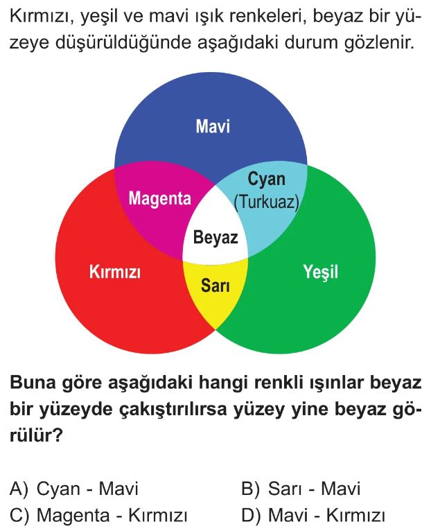 6. Sınıf Beyaz Işık ve Renkler Test 1
