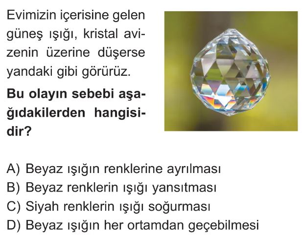 6. Sınıf Beyaz Işık ve Renkler Test 1