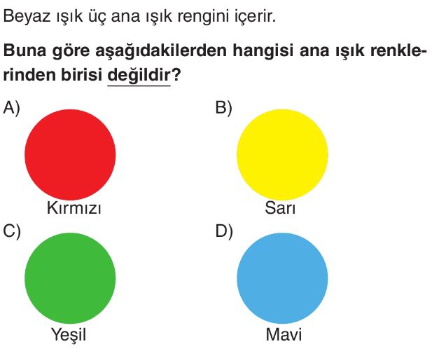 6. Sınıf Beyaz Işık ve Renkler Test 1