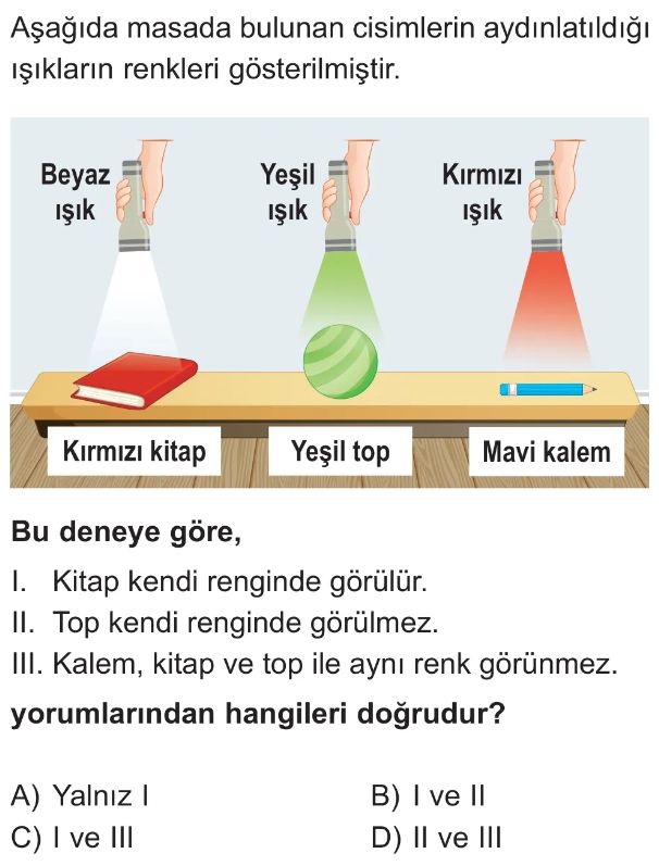 6. Sınıf Beyaz Işık ve Renkler Test 2