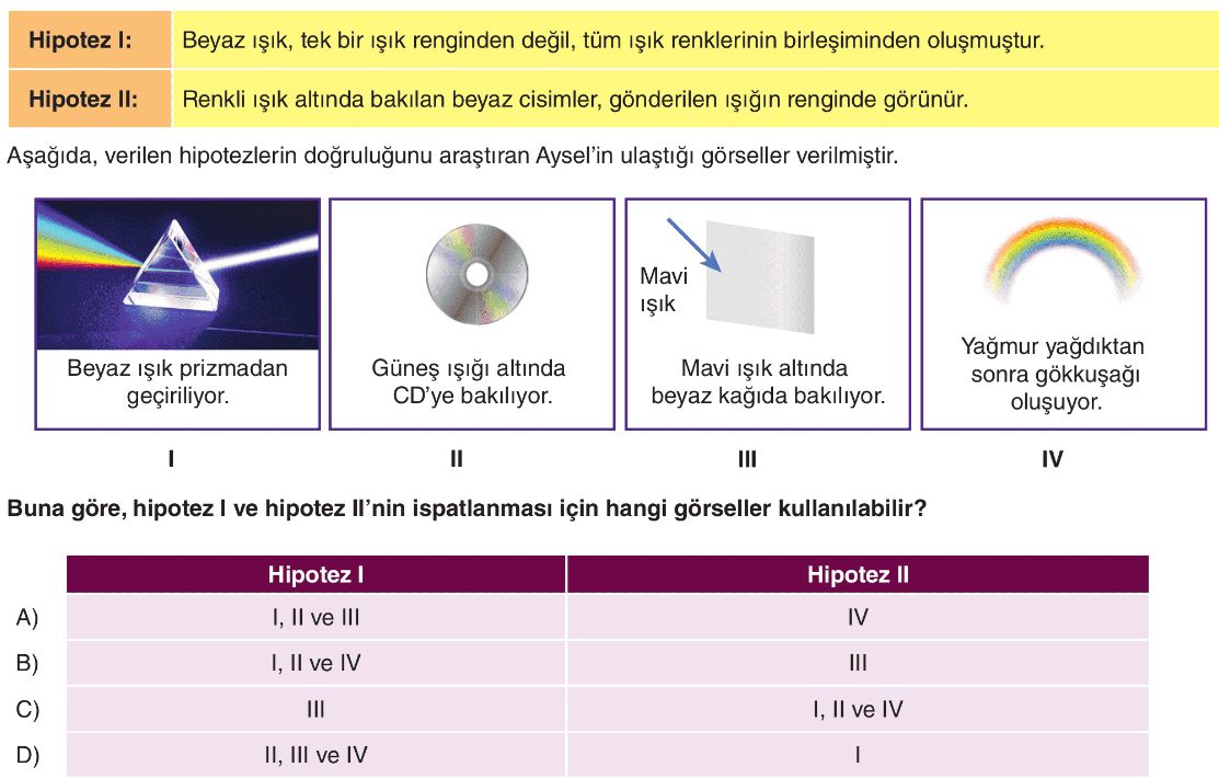 6. Sınıf Beyaz Işık ve Renkler Test 2