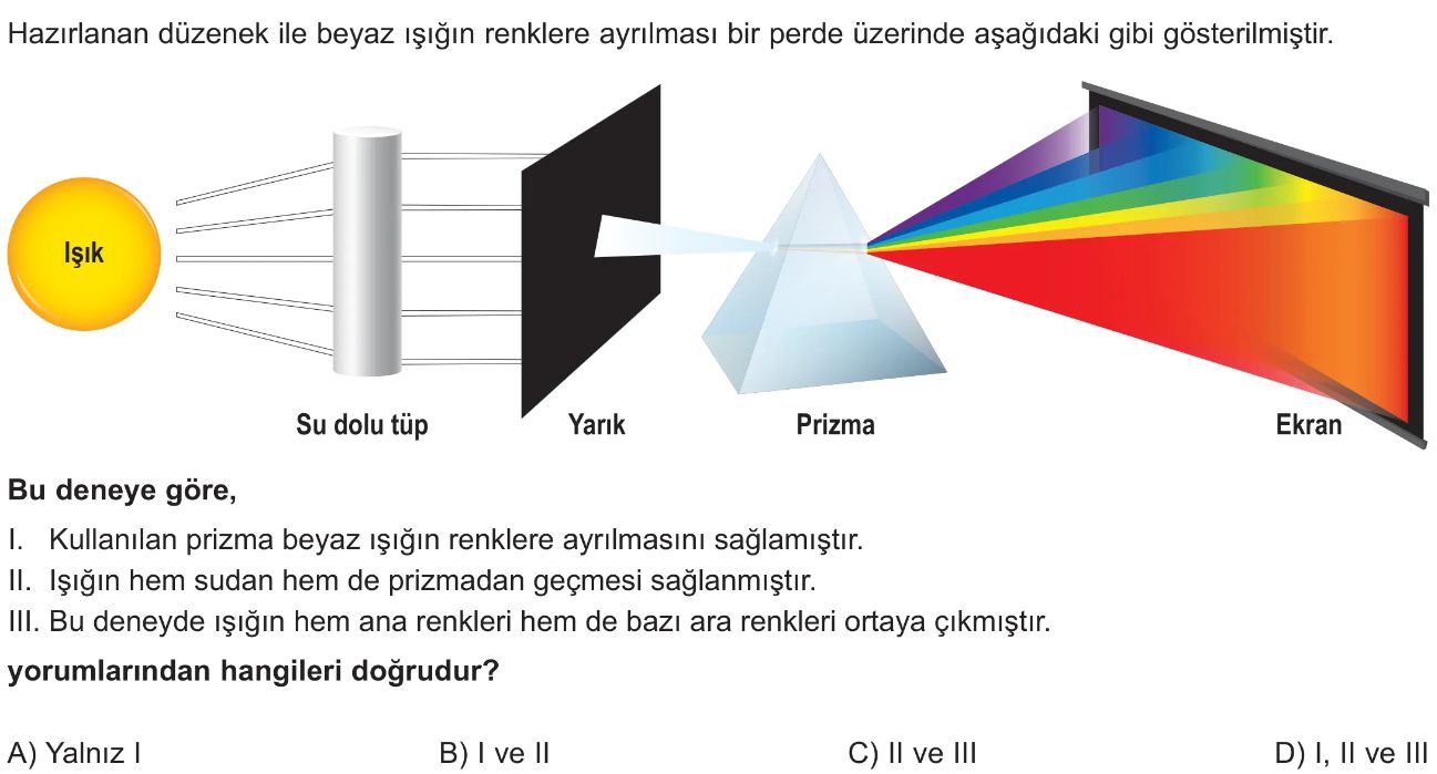6. Sınıf Beyaz Işık ve Renkler Test 2