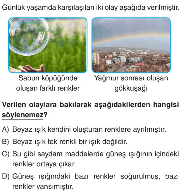 6. Sınıf Beyaz Işık ve Renkler Test 3