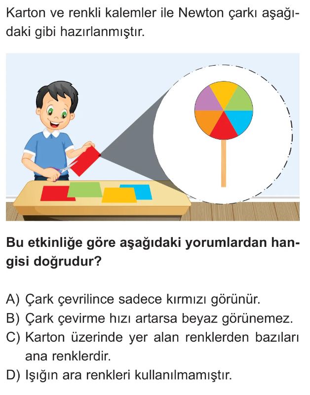 6. Sınıf Beyaz Işık ve Renkler Test 3