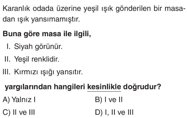 6. Sınıf Beyaz Işık ve Renkler Test 3